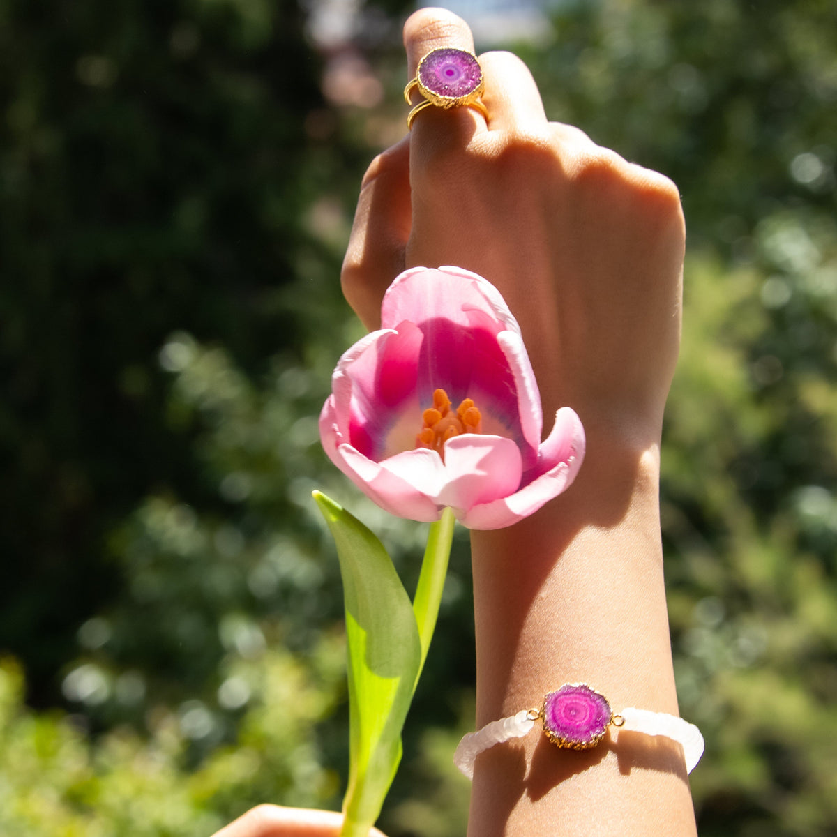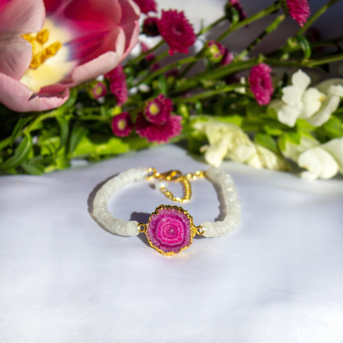 • Stones: Natural Rainbow moonstones and solar quartz