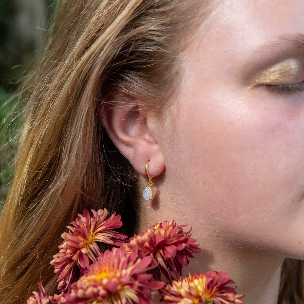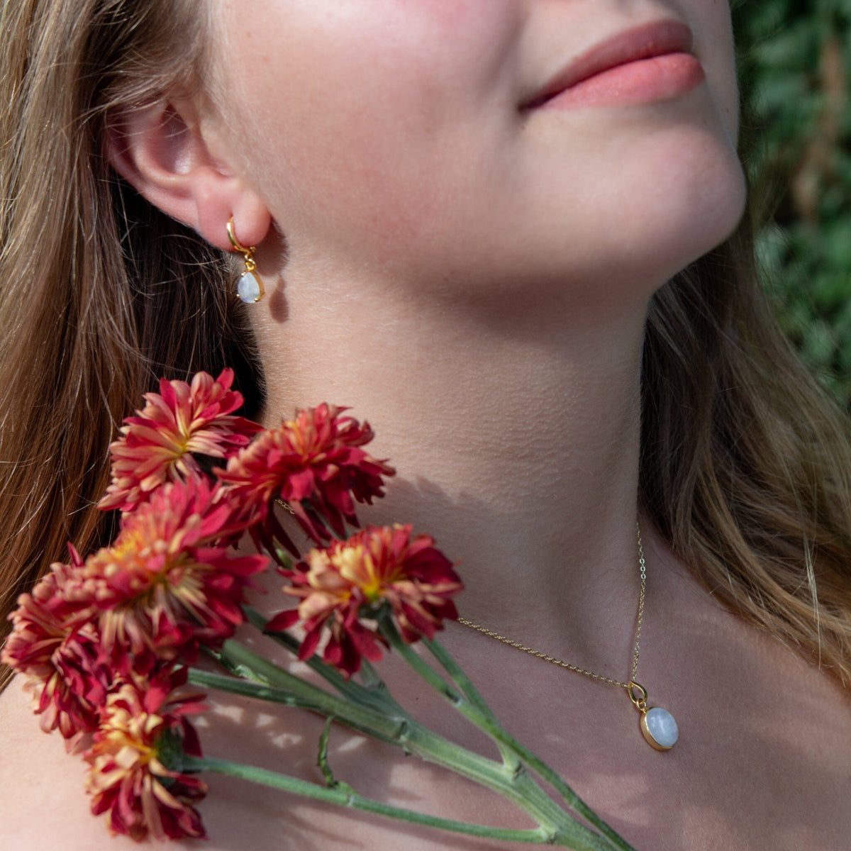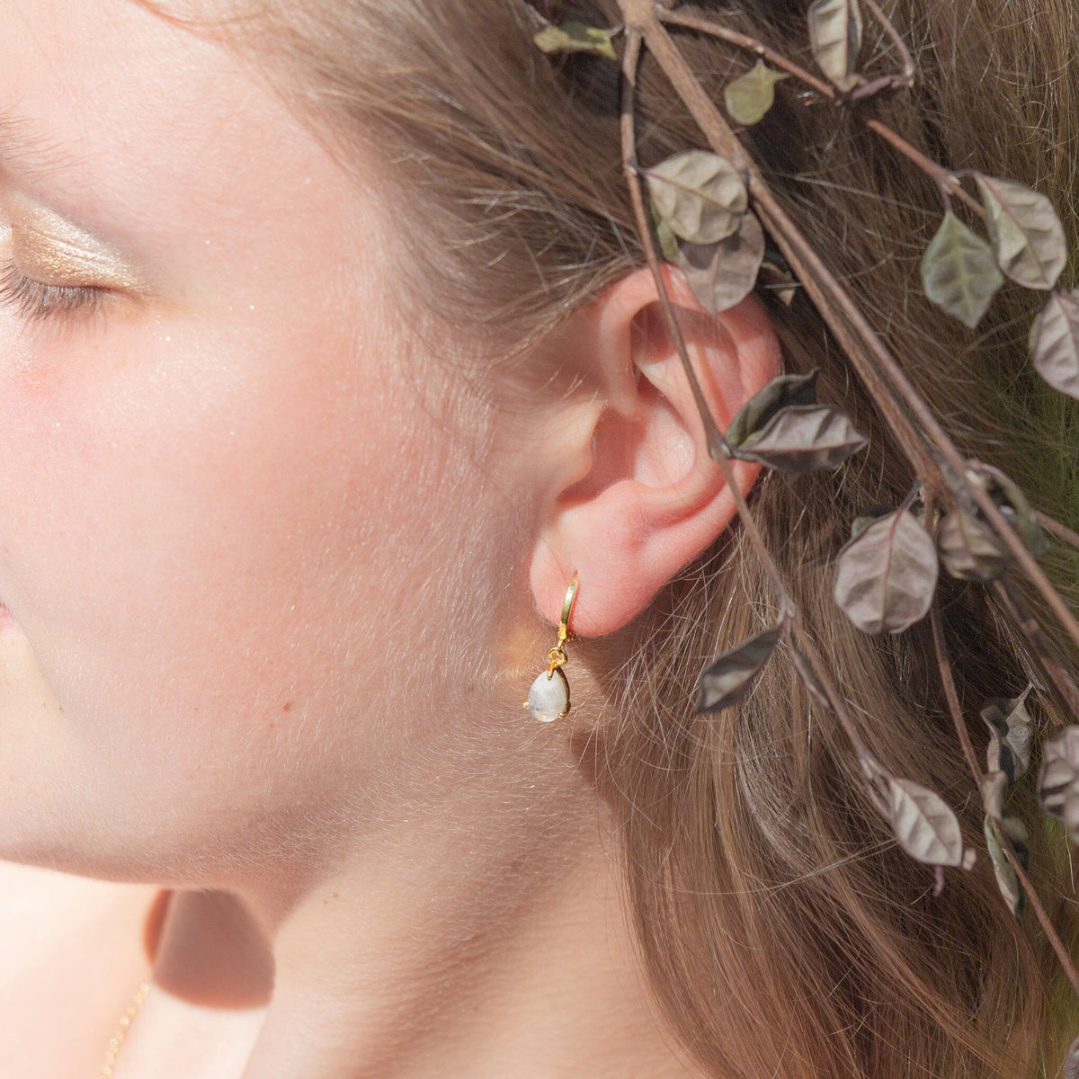 At their heart lie Rainbow Moonstone charms, reminiscent of the serene beauty of Venus, the goddess of love and the first full female nude painted in the Renaissance of a non-biblical character. The moonstone's iridescence mirrors the birth of Venus from the sea foam, capturing the play of light and the delicate elegance that defines the artwork.