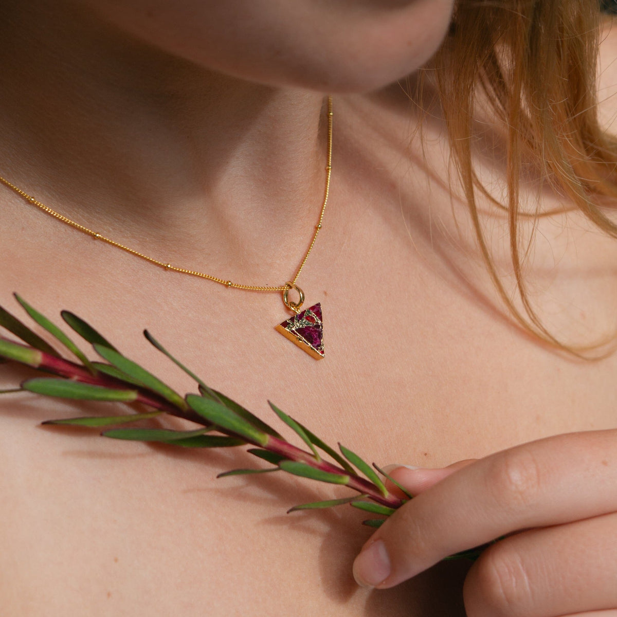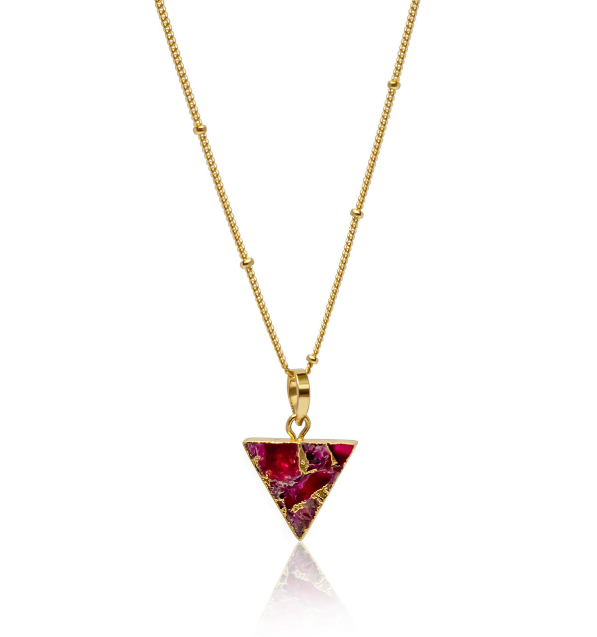 Its foundation is a delicate, adjustable, bobble chain, a harmonious blend of modern craftsmanship and classical design. At its heart, a triangular gem of intertwined Jade and gold steals the spotlight, as a representation of the fiery love between Venus, the goddess of love, and Mars, the god of war.