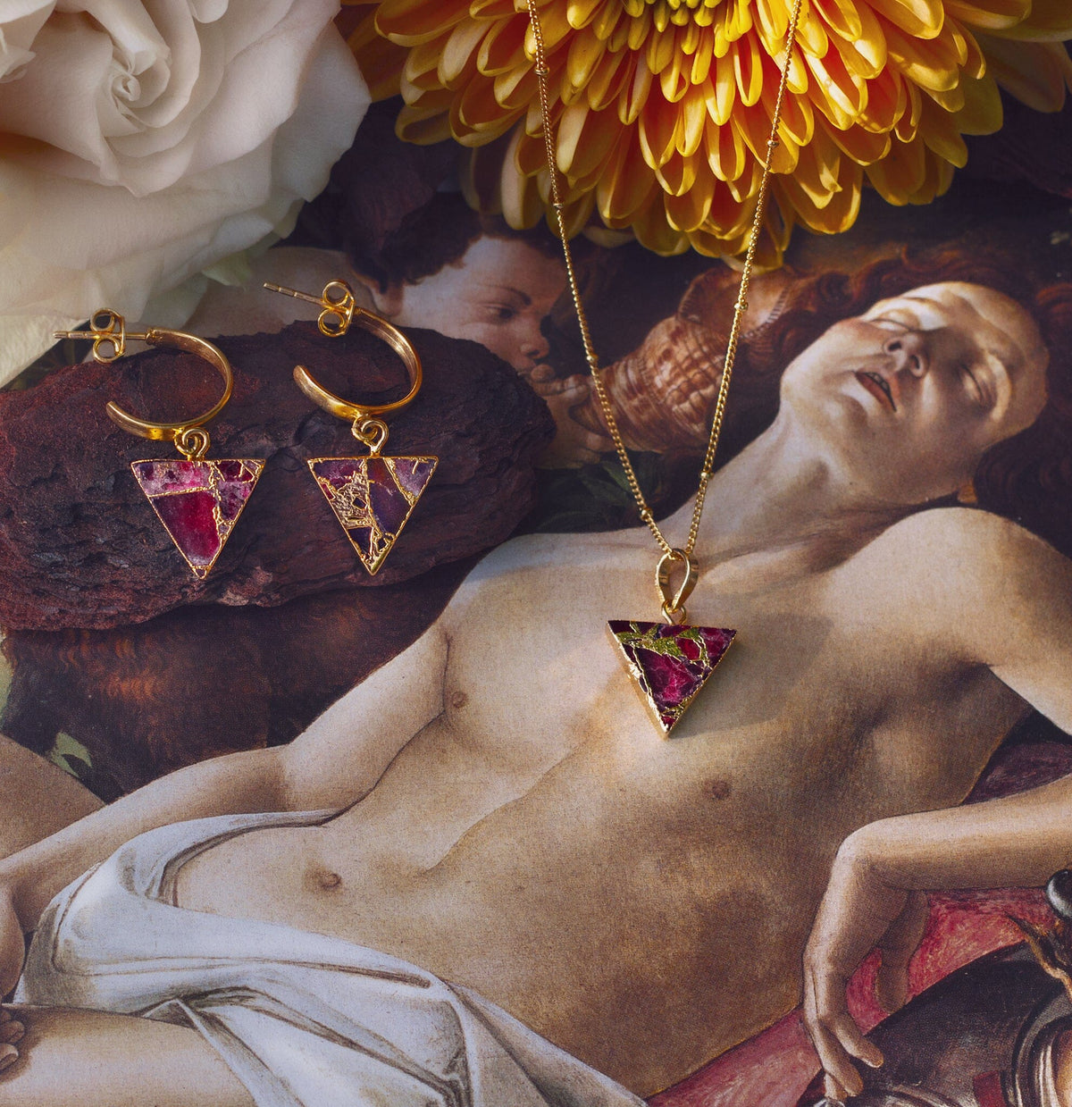 The Marte necklace, an exquisite piece from our Botticelli Collection, is a tribute to the rich narrative woven into Botticelli's iconic painting "Venere e Marte."